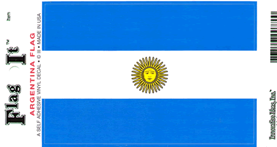 Argentina Flag Decal. Screen printed with a double pass of inks for quality, printed on thick vinyl stock and laminated with high gloss UV coated laminate, durable enough for outdoor use. Great for cars, trucks, vans, RV's boats, travel trailers, motor homes or any use you want a sticker for. Each decal measures 3.5"x5" in size.