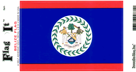 Belize Flag Decal. Screen printed with a double pass of inks for quality, printed on thick vinyl stock and laminated with high gloss UV coated laminate, durable enough for outdoor use. Great for cars, trucks, vans, RV's boats, travel trailers, motor homes or any use you want a sticker for. Each decal measures 3.5"x5" in size.