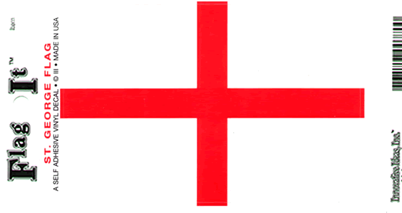 Our durable 3 ½" x 5" St. Gorge Cross England flag decals are made from vinyl material. Designed to stick to any smooth, flat surface and durable enough for outdoor use.
