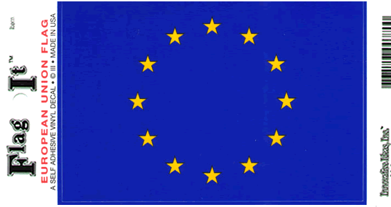 European Union Flag Decal. Screen printed with a double pass of inks for quality, printed on thick vinyl stock and laminated with high gloss UV coated laminate, durable enough for outdoor use. Great for cars, trucks, vans, RV's boats, travel trailers, motor homes or any use you want a sticker for. Each decal measures 3.5"x5" in size.