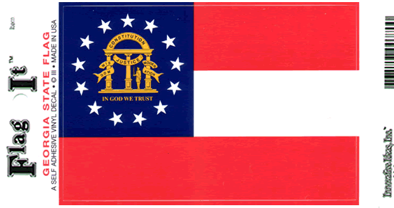 Georgia Flag Decal. Screen printed with a double pass of inks for quality, printed on thick vinyl stock and laminated with high gloss UV coated laminate, durable enough for outdoor use. Great for cars, trucks, vans, RV's boats, travel trailers, motor homes or any use you want a sticker for. Each decal measures 3.5"x5" in size.