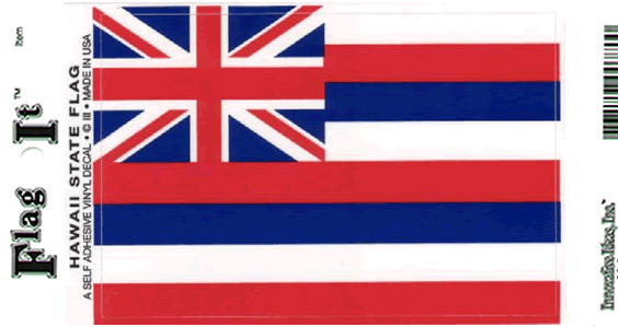 Hawaii Flag Decal. Screen printed with a double pass of inks for quality, printed on thick vinyl stock and laminated with high gloss UV coated laminate, durable enough for outdoor use. Great for cars, trucks, vans, RV's boats, travel trailers, motor homes or any use you want a sticker for. Each decal measures 3.5"x5" in size.
