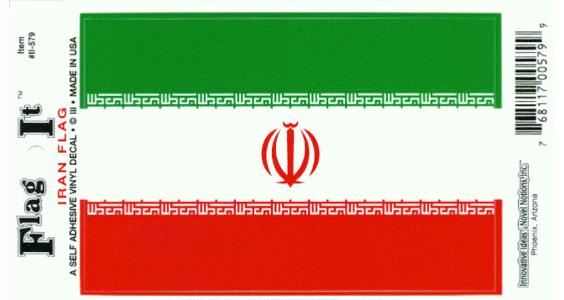 Iran Flag Decal. Screen printed with a double pass of inks for quality, printed on thick vinyl stock and laminated with high gloss UV coated laminate, durable enough for outdoor use. Great for cars, trucks, vans, RV's boats, travel trailers, motor homes or any use you want a sticker for. Each decal measures 3.5"x5" in size.