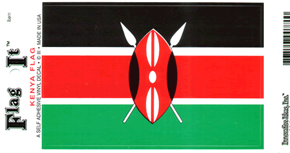 Kenya Flag Decal. Screen printed with a double pass of inks for quality, printed on thick vinyl stock and laminated with high gloss UV coated laminate, durable enough for outdoor use. Great for cars, trucks, vans, RV's boats, travel trailers, motor homes or any use you want a sticker for. Each decal measures 3.5"x5" in size.