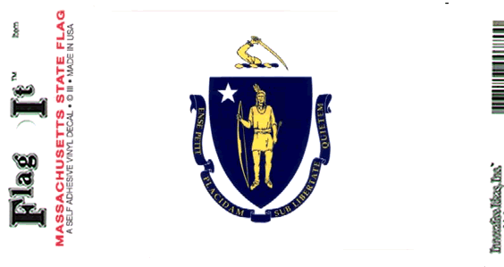 Massachusetts Flag Decal. Screen printed with a double pass of inks for quality, printed on thick vinyl stock and laminated with high gloss UV coated laminate, durable enough for outdoor use. Great for cars, trucks, vans, RV's boats, travel trailers, motor homes or any use you want a sticker for. Each decal measures 3.5"x5" in size.