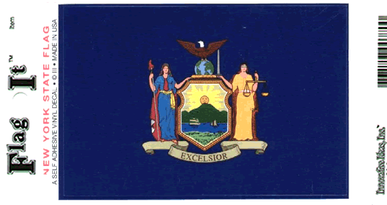 New York Flag Decal. Screen printed with a double pass of inks for quality, printed on thick vinyl stock and laminated with high gloss UV coated laminate, durable enough for outdoor use. Great for cars, trucks, vans, RV's boats, travel trailers, motor homes or any use you want a sticker for. Each decal measures 3.5"x5" in size.