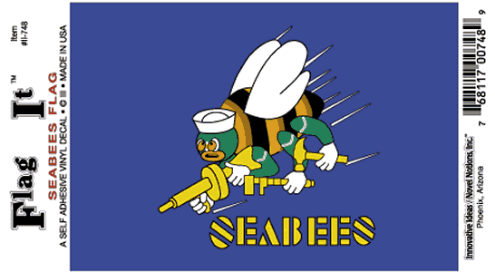 Crafted from sturdy vinyl, these Seabees flag decals adhere securely to any smooth, flat surface and are built to withstand outdoor conditions. Each decal measures 3.5"x5" for versatile application.