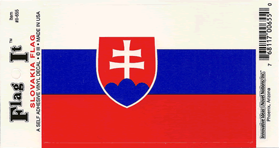 Slovakia Flag Decal. Screen printed with a double pass of inks for quality, printed on thick vinyl stock and laminated with high gloss UV coated laminate, durable enough for outdoor use. Great for cars, trucks, vans, RV's boats, travel trailers, motor homes or any use you want a sticker for. Each decal measures 3.5"x5" in size.