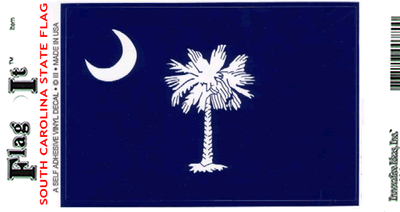 South Carolina Flag Decal. Screen printed with a double pass of inks for quality, printed on thick vinyl stock and laminated with high gloss UV coated laminate, durable enough for outdoor use. Great for cars, trucks, vans, RV's boats, travel trailers, motor homes or any use you want a sticker for. Each decal measures 3.5"x5" in size.