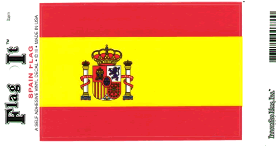 Spain Flag Decal. Screen printed with a double pass of inks for quality, printed on thick vinyl stock and laminated with high gloss UV coated laminate, durable enough for outdoor use. Great for cars, trucks, vans, RV's boats, travel trailers, motor homes or any use you want a sticker for. Each decal measures 3.5"x5" in size.