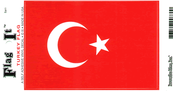 Turkey Flag Decal. Screen printed with a double pass of inks for quality, printed on thick vinyl stock and laminated with high gloss UV coated laminate, durable enough for outdoor use. Great for cars, trucks, vans, RV's boats, travel trailers, motor homes or any use you want a sticker for. Each decal measures 3.5"x5" in size.