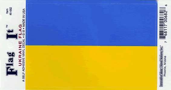 Ukraine Flag Decal. Screen printed with a double pass of inks for quality, printed on thick vinyl stock and laminated with high gloss UV coated laminate, durable enough for outdoor use. Great for cars, trucks, vans, RV's boats, travel trailers, motor homes or any use you want a sticker for. Each decal measures 3.5"x5" in size.