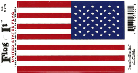 Our durable flag decals are made from weatherproof vinyl material. Designed to stick to any smooth, flat surface and durable enough for outdoor use. This decal measures 3.5"x5" and is the *REVERSE* image of the U.S. flag, for use in situations where this is the appropriate display option. This decal is 100% Made in the USA.
